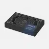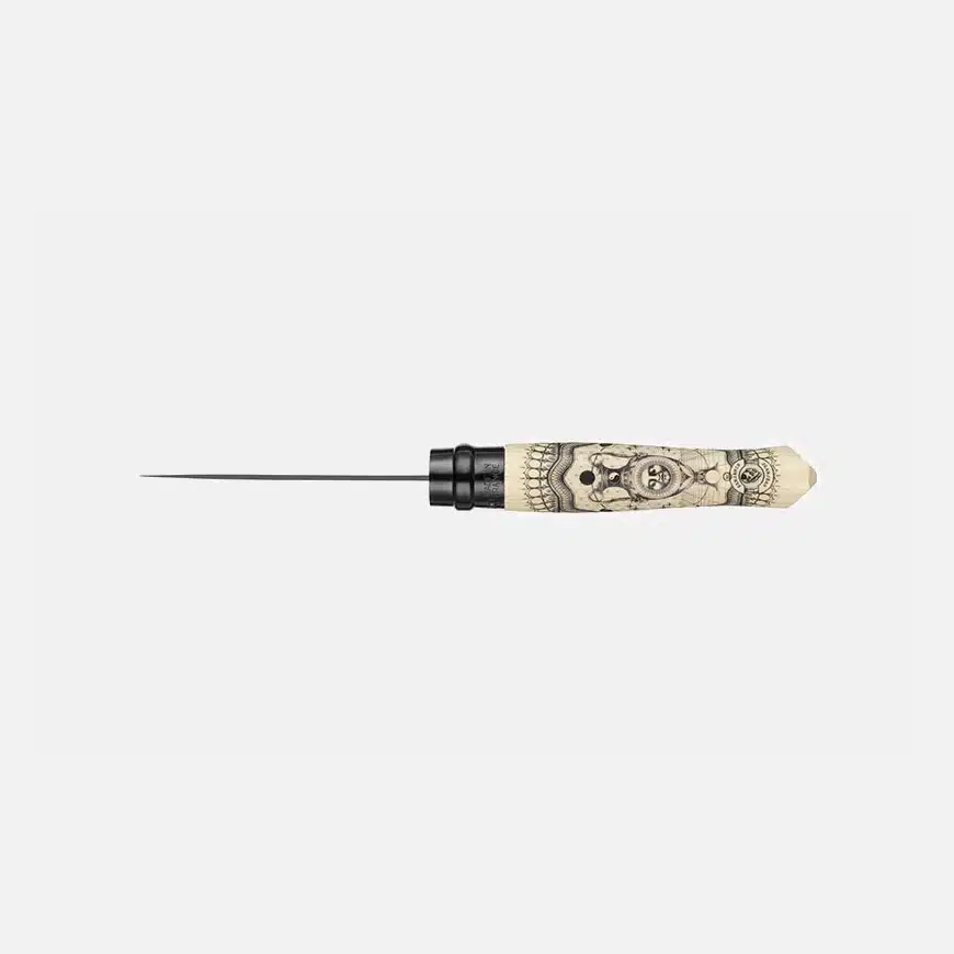 Τα γύρω γεωμετρικά μοτίβα, υφασμένα και αλληλένδετα, υποδηλώνουν την έννοια ενός κοσμικού ιστού όπου κάθε στοιχείο συνδέεται με ένα μεγαλύτερο σύνολο. Αυτή η απεικόνιση παίζει με τη δυαδικότητα: από απόσταση, μια κλασική χαρακτική που θυμίζει την αρχαιότητα. Αλλά όταν την βλέπουμε από κοντά, αναδύονται σύγχρονα σύμβολα, συνδυάζοντας την παράδοση και τη νεωτερικότητα.»