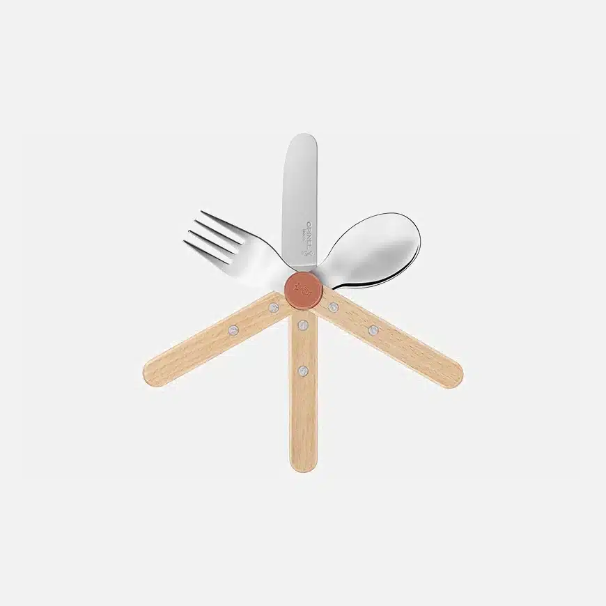 Τα μαχαιροπίρουνα είναι τέλεια προσαρμοσμένα στα μικρά χεράκια. Είναι κατασκευασμένα στη Γαλλία με βιώσιμα υλικά: ξύλο οξιάς με πιστοποίηση PEFC , ανοξείδωτο ατσάλι και ανακυκλωμένο πλαστικό. Είναι εργονομικά, ασφαλή και εύκολα στην αποθήκευση χάρη σε ένα έξυπνο σύστημα κλιπ που διαθέτουν. Ένα σχέδιο που εμπνεύστηκε ο Franck Fontana , το οποίο συνδυάζει άνεση, ασφάλεια και στυλ!